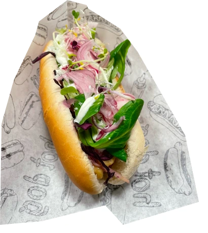 Der Hot Dog für Feinschmecker – Neu und unwiderstehlich! Saftiges Rindfleisch, Chutney-Kraut, Pecorino und eingelegte Zwiebeln vereinen sich zu einem außergewöhnlichen Geschmackserlebnis.